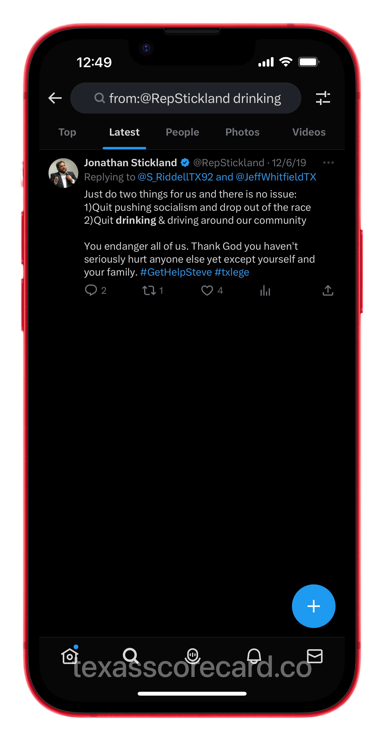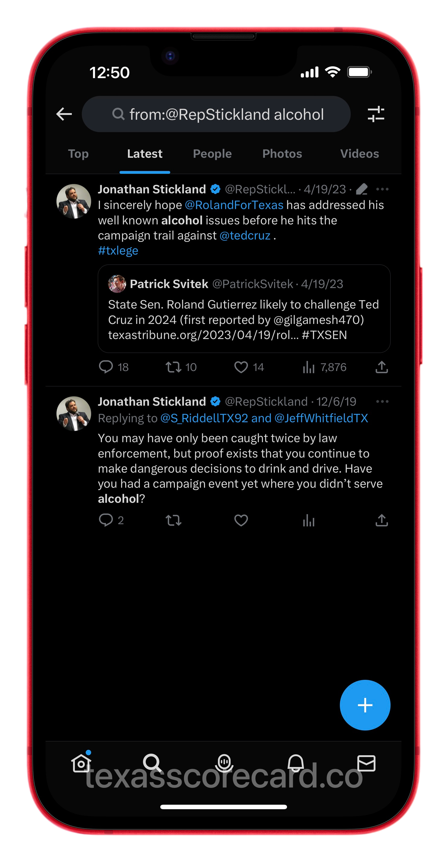 To further emphasize their disingenuous tactics, their Twitter screenshots showcase their accusations against members of the Texas Legislature regarding alcohol use. These screenshots serve as visual evidence of their selective outrage and provide a glimpse into their calculated attempts to create a false narrative.