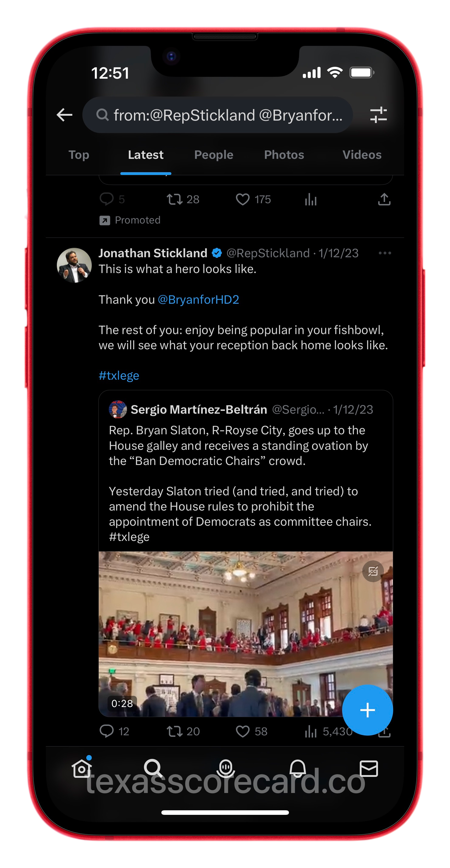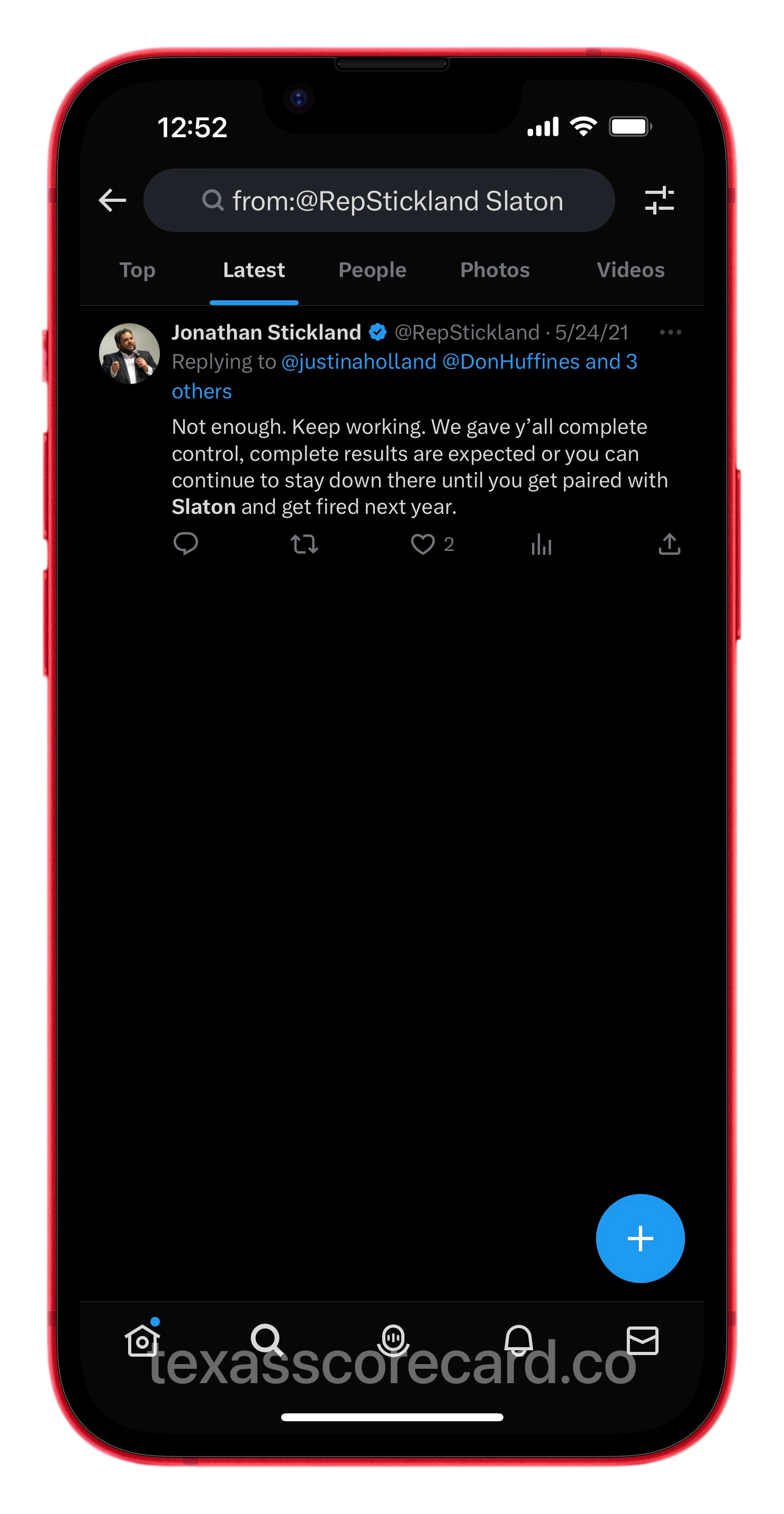 Most recent tweets from Jonathan Stickland referencing Bryan Slaton