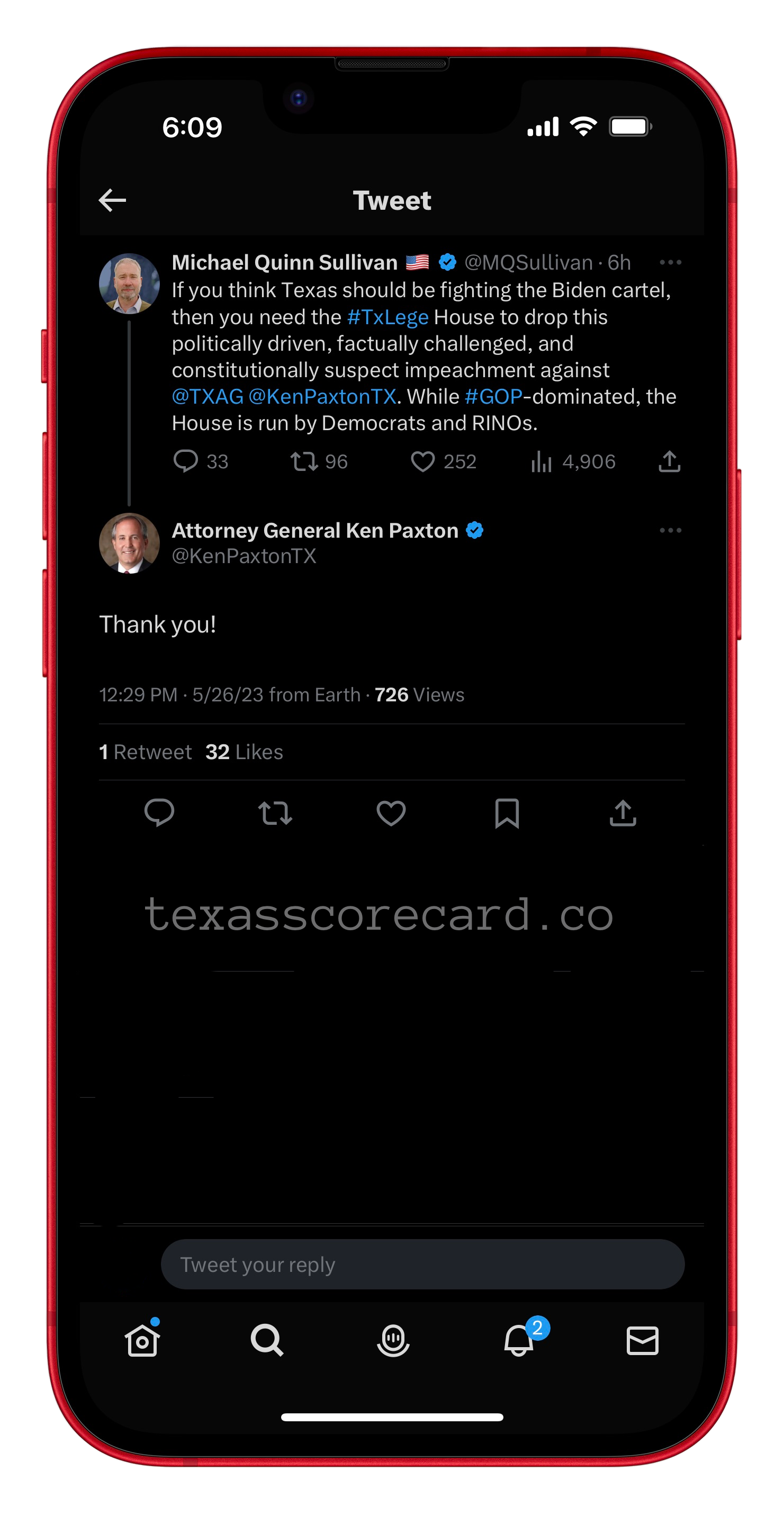 The #TxLege House is a lawless body, working against due process, transparency, and the Texas Constitution... in addition to killing @TexasGOP priorities.#DrunkDade's impeachment push against @TxAG @KenPaxtonTX is about silencing conservatives and appeasing the Biden cartel. https://t.co/18XlyR4zow