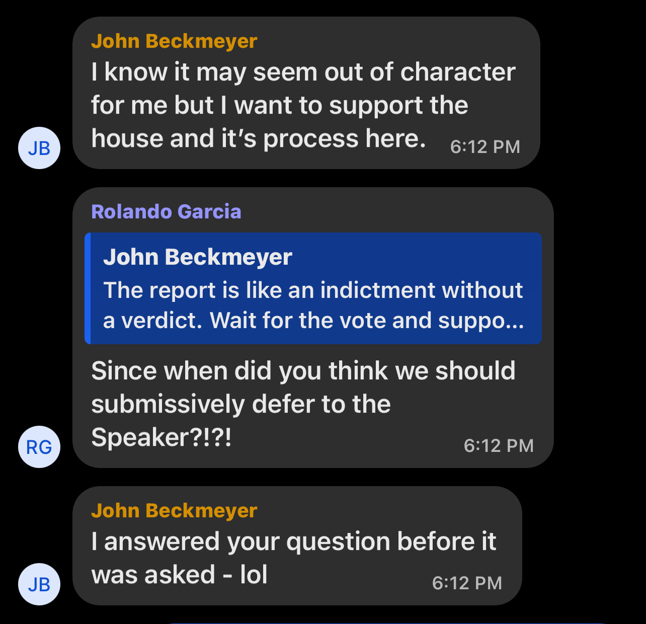Garcia made a valid point. During the ongoing legislative session, Chairman Rinaldi and RPT have relentlessly targeted Speaker Dade Phelan, labeling him as a RINO, alleging that he shields child predators, and much more.