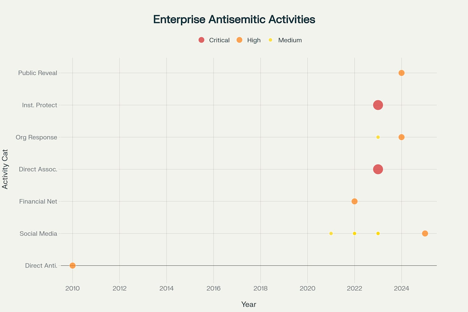 The evidence shows a fifteen-year escalation in antisemitic rhetoric, financing, and institutional protection driven by The Enterprise, his political action committees, and their growing circle of activists and candidates.