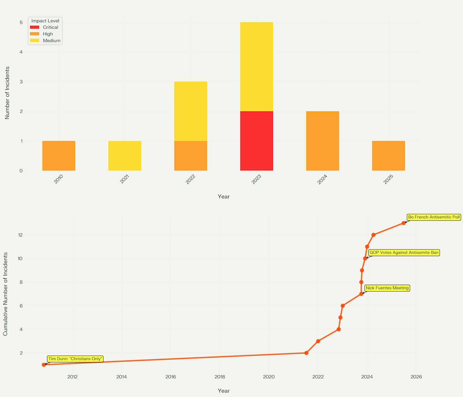 - Procedural smokescreens: GOP leaders such as Matt Rinaldi argued that banning antisemitic associations was “vague,” helping kill the December 2023 resolution even as antisemitic violence spiked statewide.