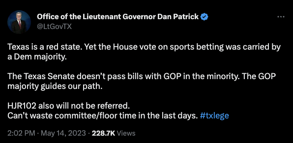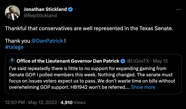 It's well-known that Texas Scorecard and their allies are the colostomy bag boys for Texas Lt. Gov. Dan Patrick, who is fervently against expanding gambling in the state.