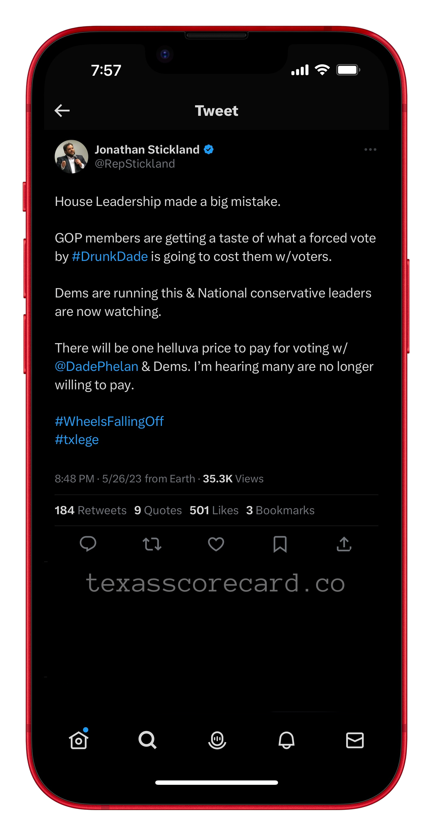 Multiple sources, speaking to Scorecard Confessions, have disclosed that Stickland, similar to Paxton, resorted to making phone calls to House members, using intimidation tactics in the last 72 hours.