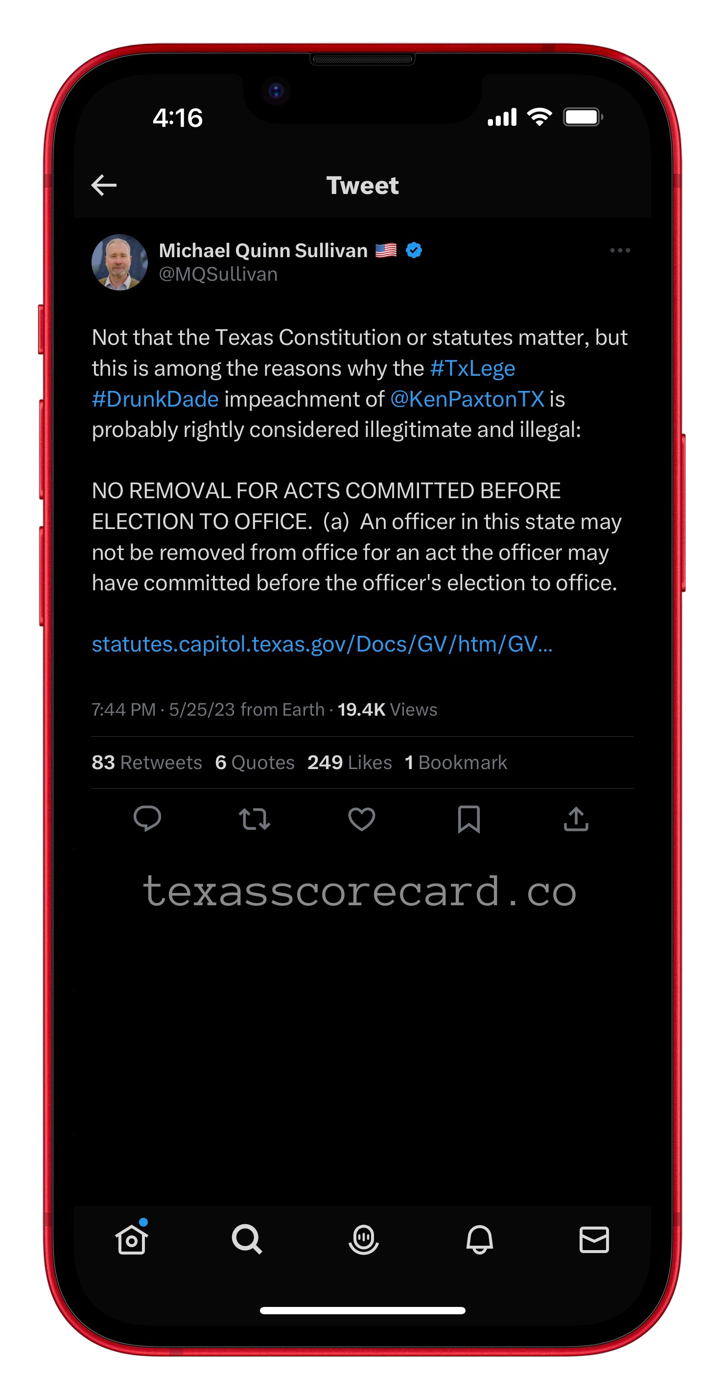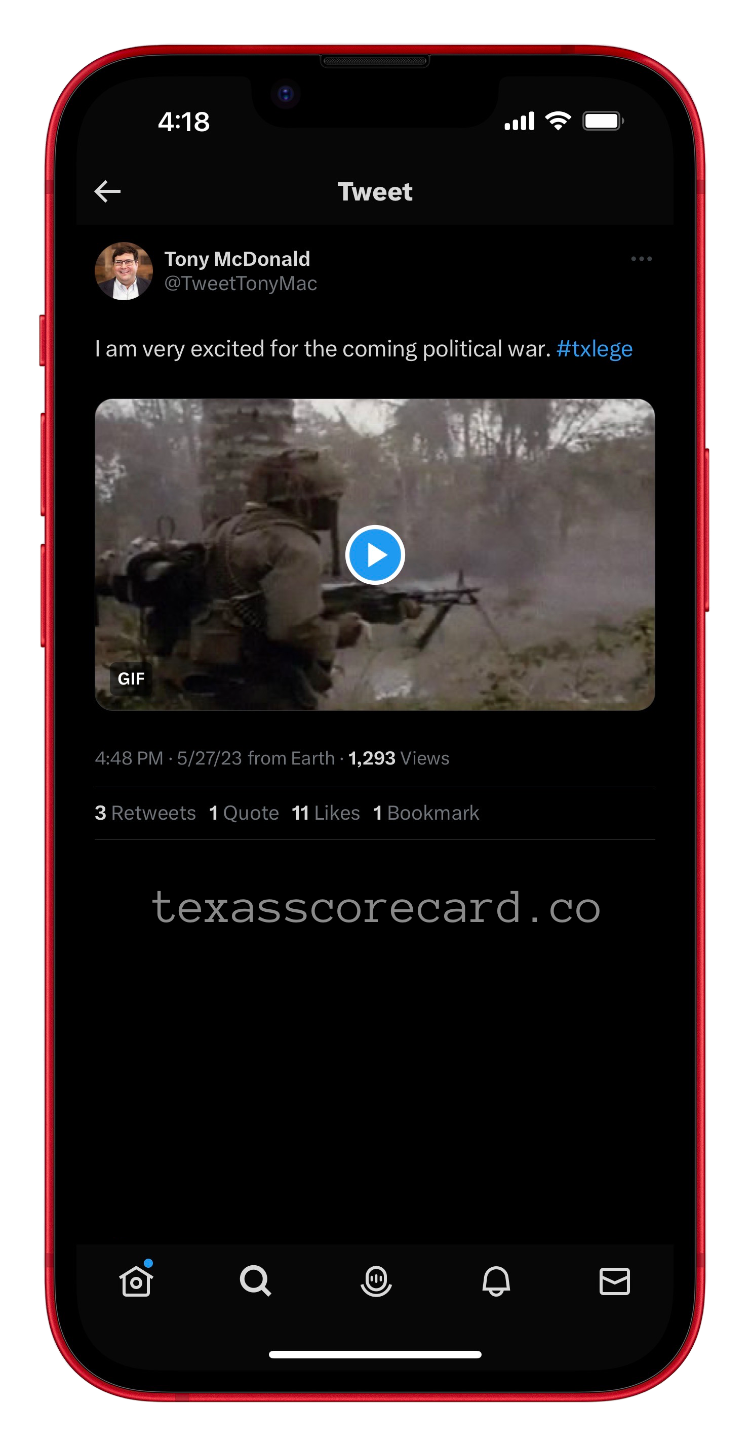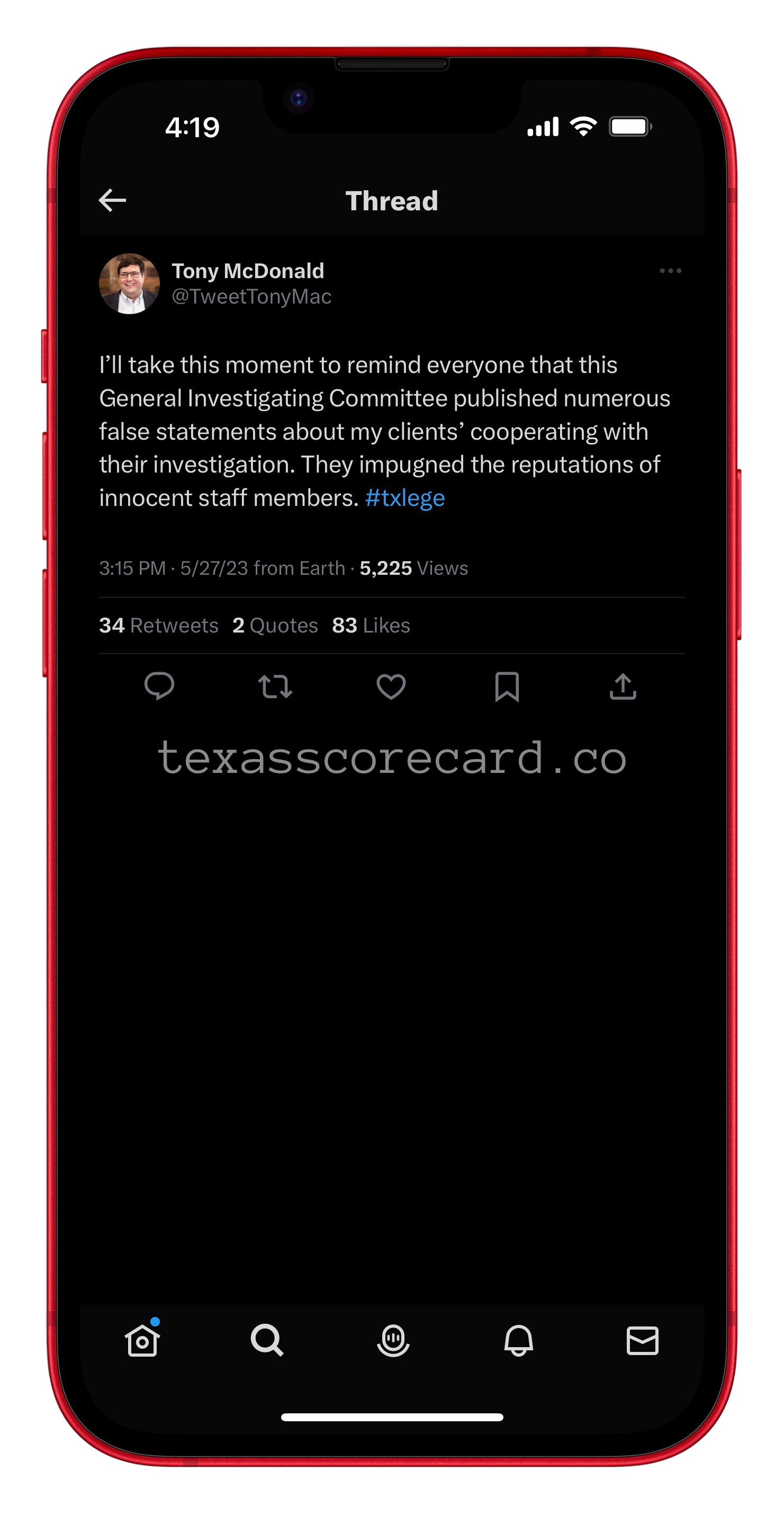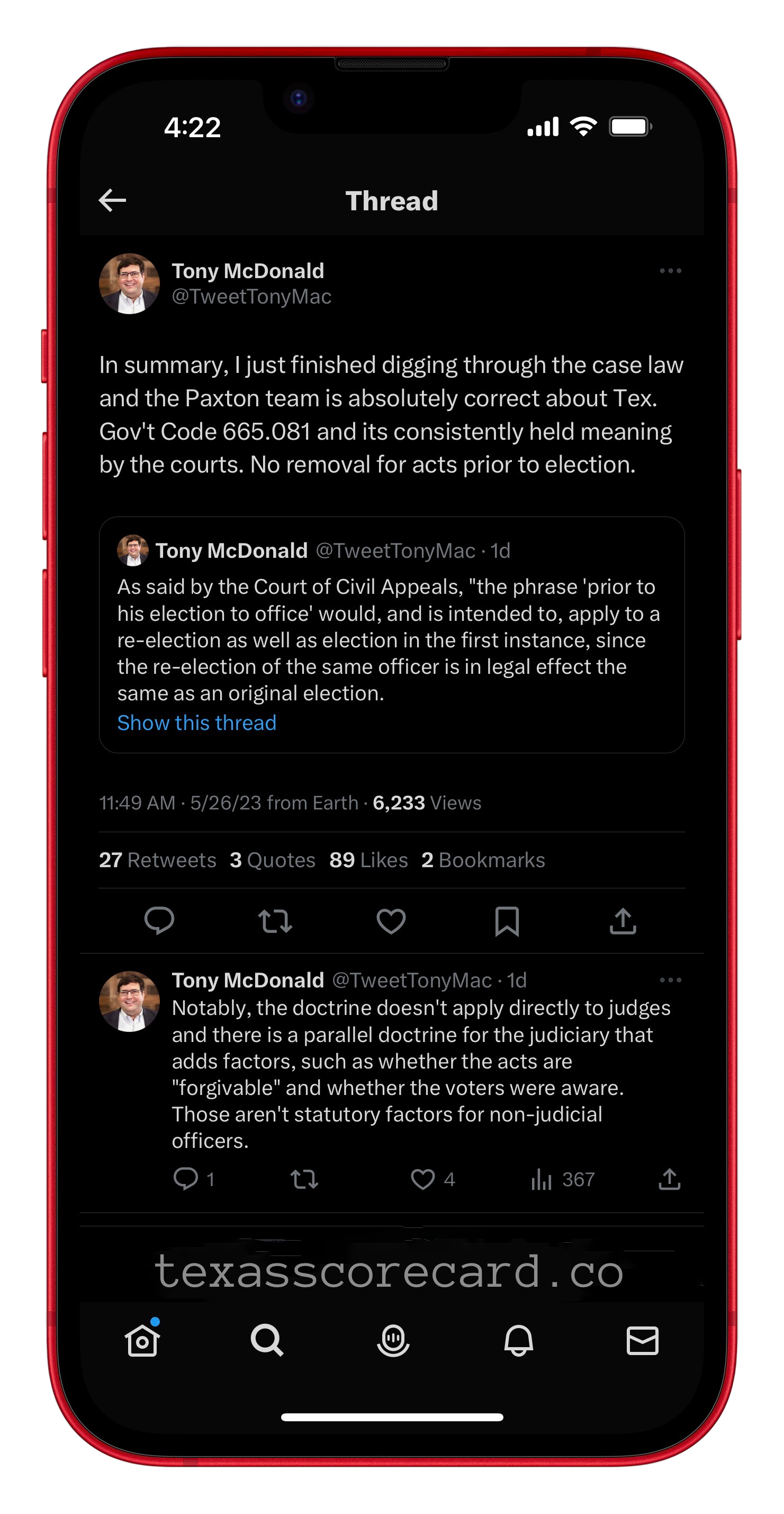 Tweet from Texas Scorecard Lawyer Tony MacDonald